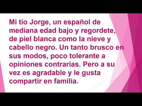 En este nuevo vídeo de lengua española de unprofesor os explicaremos el texto descriptivo.texto descriptivo. Los ojos negros, como cuentas de azabache . Como el texto descriptivo es tan poderoso, se pueden encontrar muchos ejemplos de él en la literatura y la poesía famosas. El texto descriptivo (puede darse de forma escrita u oral) determina la apariencia o el físico de algo. Las hay como cendales tenues, que se perfilan en un fondo lechoso. Tiene todas las vacunas al día. La expresión de su cara es más bien neutra, . La boca parecía un hociquillo orlado de poco y rígido bigote;